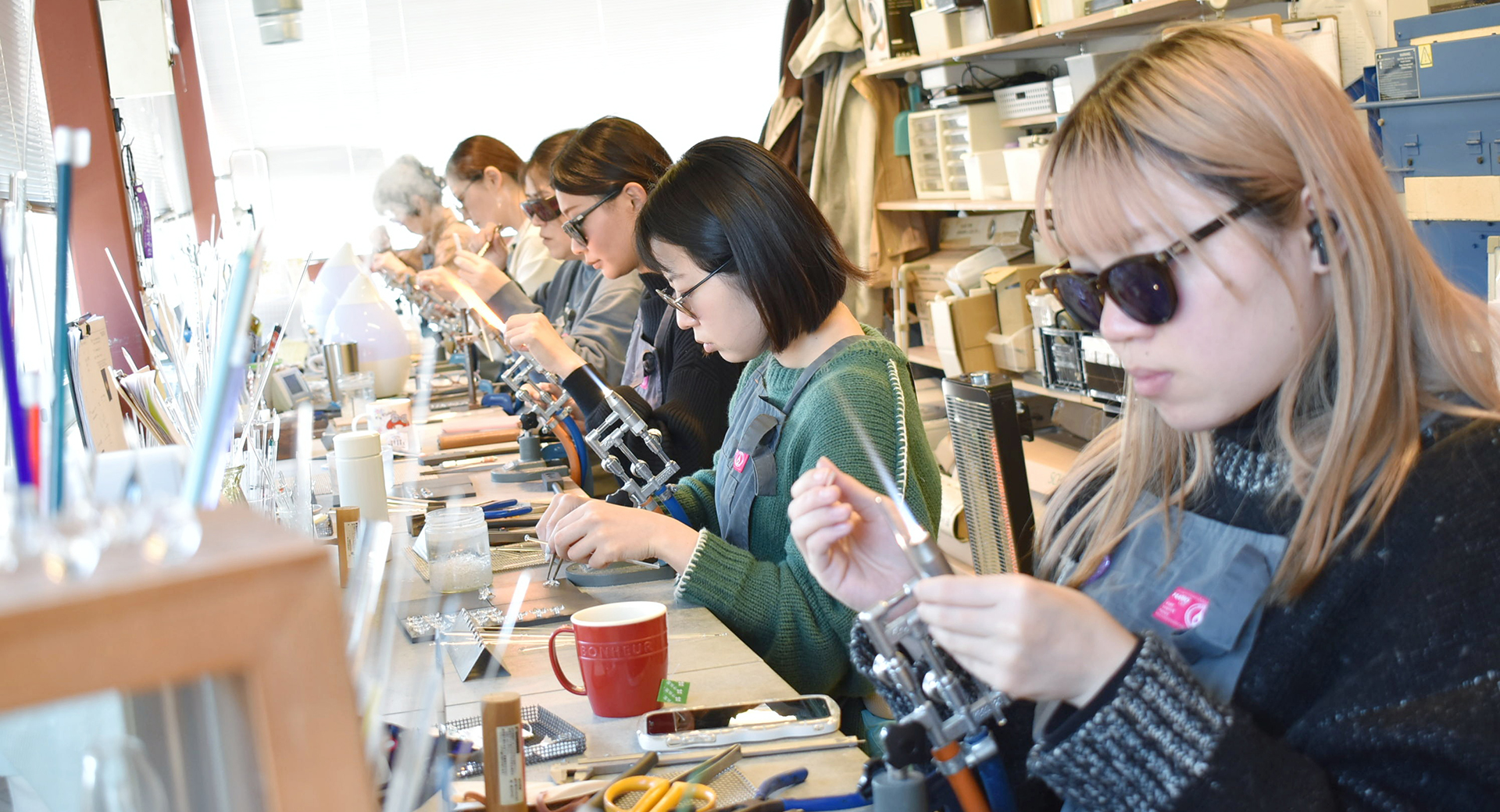 コワーキングスペース、ゲストハウス、ガラスアクセサリー工房で構成された複合拠点、小高パイオニアヴィレッジ。ガラスアクセサリー工房(アトリエiriser) の見学を通じて創造的な復興への取組みと地域の新しい魅力を発見できます。