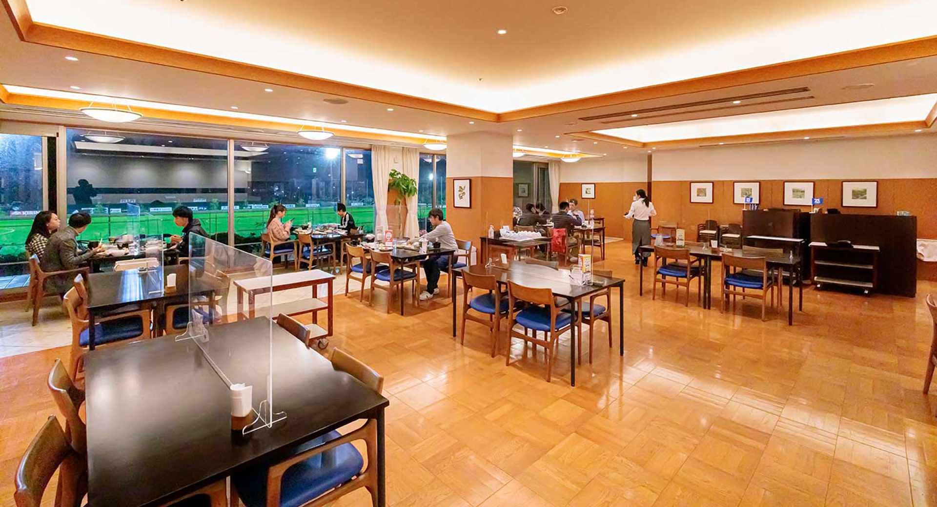 夕食会場はJヴィレッジセンターハウス内にある「アルパインローズ」。広大な緑輝くピッチを目の前に望むJヴィレッジならではの非日常空間と、契約農家から仕入れる新鮮野菜や「常磐もの」の旬のお魚で、福島県産食材を使用したシェフこだわりのディナーをお楽しみいただける他、楢葉町名物のマミーすいとんも味わえます。