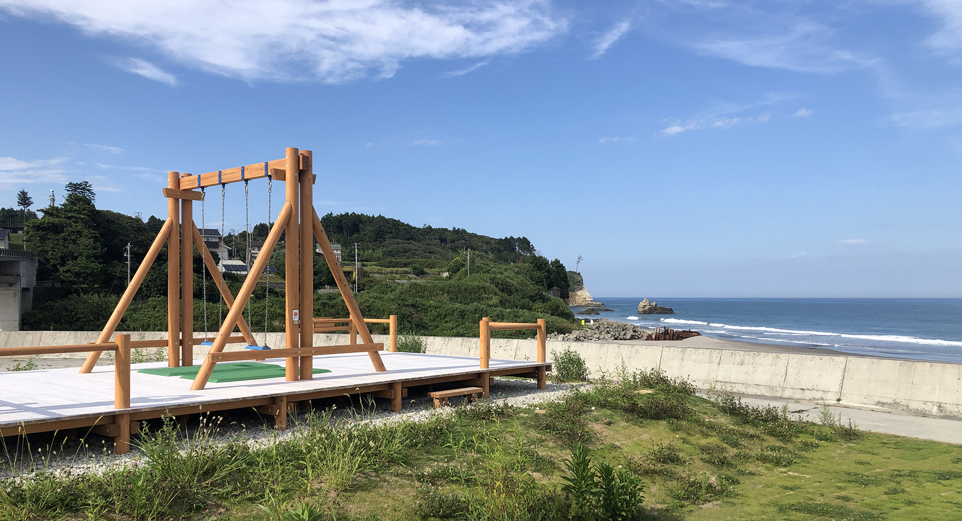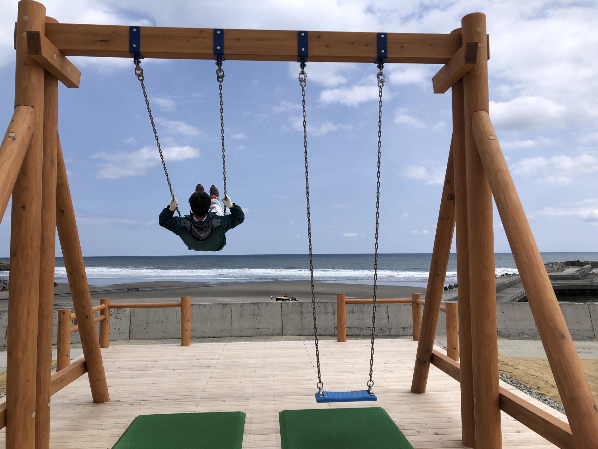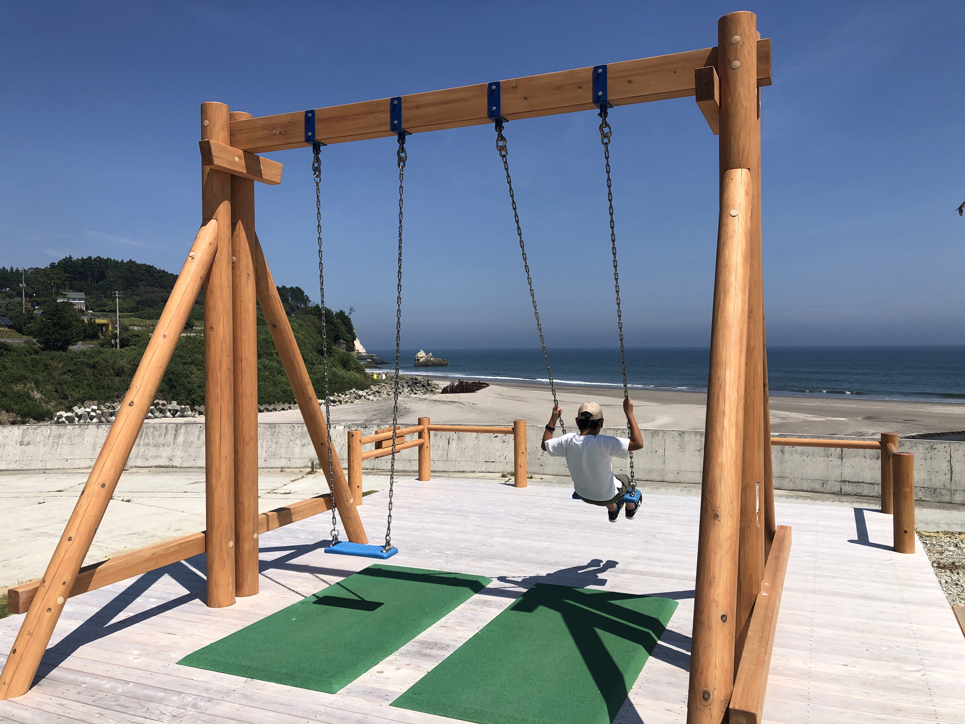 2025年に福島県沿岸部を南北に走る県道391号(浜街道)から富岡漁港へと向かう途中の緑地に富岡漁港ぶらんこ広場が整備され、話題となりつつある「絶景ブランコ」。紺碧の太平洋が目の前に広がる光景を見ながら漕ぎ出すブランコに思わず夢中!友達で、カップルでSOUSOUの光景を目に、写真に焼き付けよう!