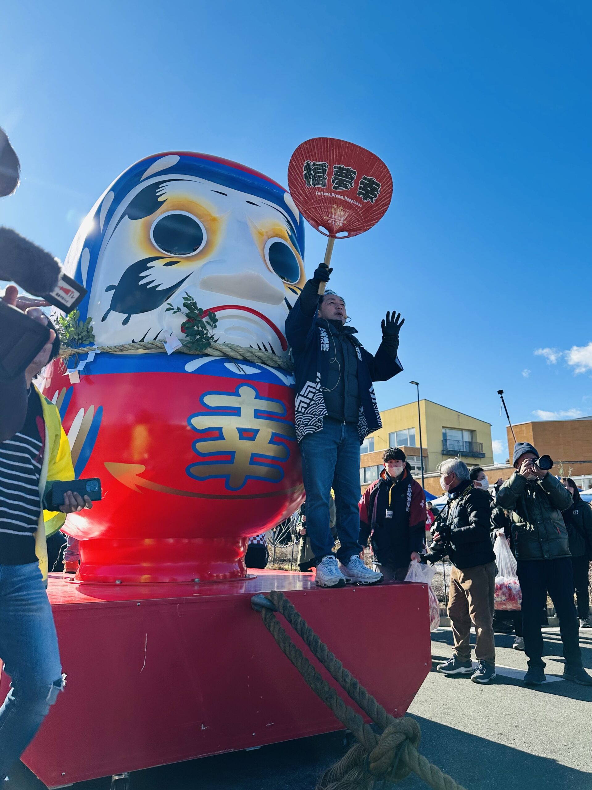 震災後、町全域が避難区域となったため、一時は避難先のいわき市などで開催を続けてきました。しかし、2022年に町内の一部で避難指示が解除されたことを受け、翌2023年からは12年ぶりに双葉町内での開催が復活。 巨大なダルマを東西に分かれて引き合う伝統の「巨大ダルマ引き」も再開され、町には再び威勢の良い掛け声と笑顔が戻りました。
